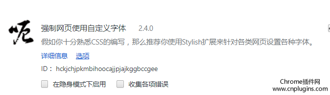 插件名称:强制网页使用自定义字体 v2.4.0 插件作者:Jak Wings 插件语言: English, 中文 (简体), 中文 (繁體) 官方站点:暂无 插件唯一标识:hckjchjpkmbihoocajjpjajkggbccgee_2.4.0