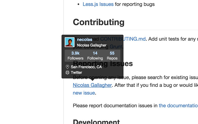 GitHub Hovercard是一款可以使用鼠标悬停快速浏览项目信息/用户信息/项目讨论的Chrome扩展,无论在GitHub的哪一个界面,只要鼠标停驻在链接上面,就可以快速查看有关信息,而无需点击进
