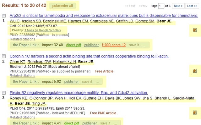 The paperlink for PubMed在 PubMed 是一款在搜索结果页面,添加 PDF 链接、影响因子、F1000评论、作者发表记录等信息,在在普通网页上,尝试提取文献并展示相关信息的chrome插件。